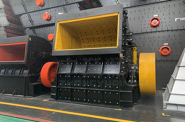 重錘破由機(jī)體、襯板、上機(jī)殼、錘頭、轉(zhuǎn)子軸、破碎腔、活動(dòng)襯板等部件組成。其中活動(dòng)襯板位于出料口處,通過調(diào)節(jié)活動(dòng)襯板可以控制出料粒度的大小。