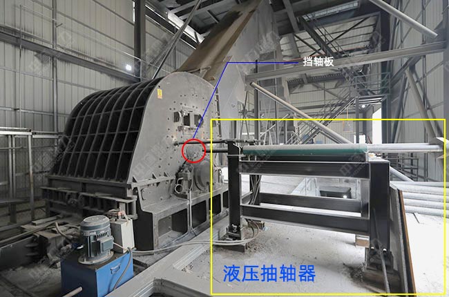 機(jī)體設(shè)有觀察門,大型設(shè)備機(jī)殼側(cè)板上留有抽軸孔,更換錘頭和錘軸只需卸掉外側(cè)的擋軸板,通過(guò)液壓抽錘軸裝置就可方便、快捷的更換,省時(shí)省力。