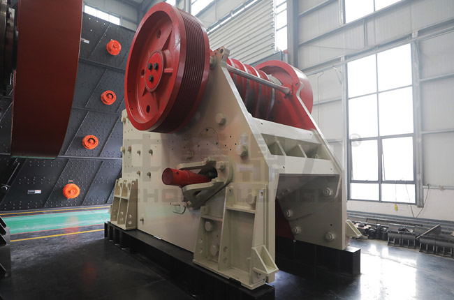 電動機驅(qū)動皮帶和皮帶輪,通過偏心軸使動顎上下運動,當動顎上升時肘板與動顎間夾角變大,從而推動動顎板向固定顎板接近,與其同時物料被壓碎或劈碎,達到破碎的目的;當動顎下行時,肘板與動顎夾角變小,動顎板在拉桿,彈簧的作用下,離開固定顎板,此時已破碎物料從破碎腔下口排出。