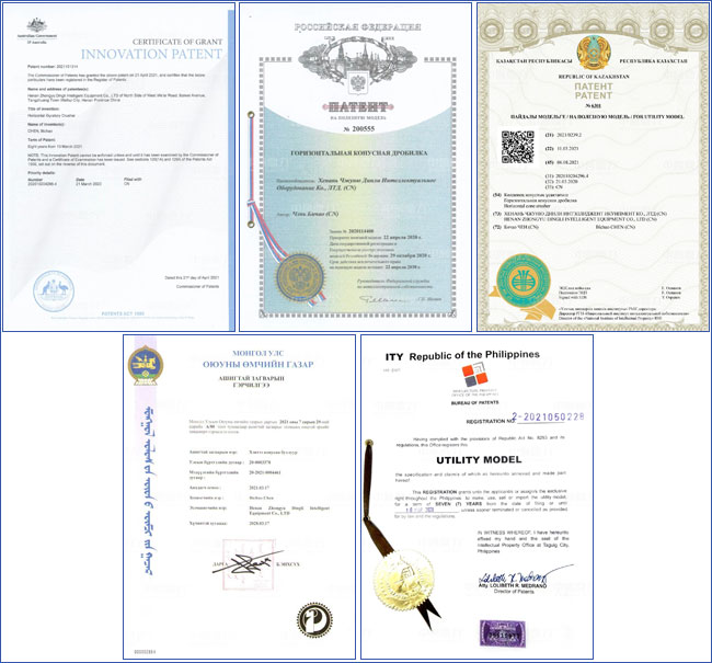 繼5項(xiàng)際專(zhuān)利(澳大利亞、俄羅斯、哈薩克斯坦、蒙古、菲律賓)的實(shí)力在冊(cè)之后,近日,由中譽(yù)鼎力技術(shù)部工程師自主研發(fā)設(shè)計(jì)的DLHGC臥式旋回破碎機(jī)憑借其、智能等優(yōu)勢(shì)榮獲家專(zhuān)利、多項(xiàng)家實(shí)用專(zhuān)利和外觀設(shè)計(jì)專(zhuān)利!