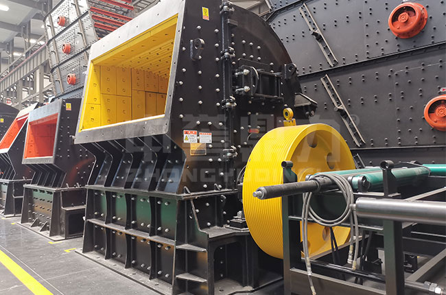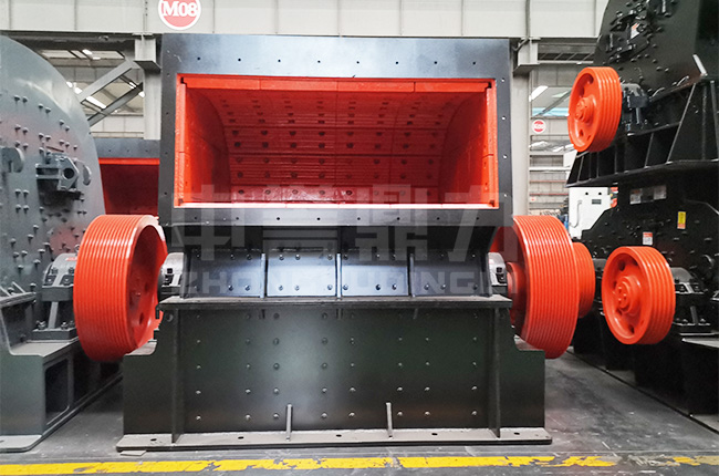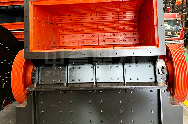 左側(cè)圖片就是反擊式粉碎機的結(jié)構(gòu)圖,該設(shè)備主要由機架、襯板、反擊襯板、反擊架、進(jìn)料斗、電機、傳動裝置等組成,其中反擊板分為三組,形成兩個粉碎腔,在第一個粉碎腔可以把≤850mm的物料粉碎成100mm以下。在第二個粉碎腔中可以把100mm的物料在粉碎至20mm以下,平常需要兩臺設(shè)備來粉碎,這里只需要一臺反擊式粉碎機,過程簡化為一段破碎,另外設(shè)備整體結(jié)構(gòu)緊湊、外形美觀。