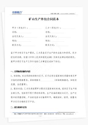 鑒于甲方是一家具有開(kāi)采礦山資質(zhì)的企業(yè),乙方是一家具有礦山外包服務(wù)資質(zhì)的企業(yè),雙方本著平等互利的原則,經(jīng)協(xié)商,就甲方將其礦山開(kāi)采業(yè)務(wù)外包給乙方一事達(dá)成如卜協(xié)議: