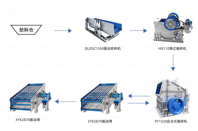 時(shí)產(chǎn)200噸石料生產(chǎn)線工藝流程:振動(dòng)給料機(jī)→破碎機(jī)→振動(dòng)篩,如果物料硬度不高,可以采用重錘破一次成型工藝,如果高硬度物料,需要采用兩段破碎工藝,具體投資成本需要參考設(shè)備選型配置。
