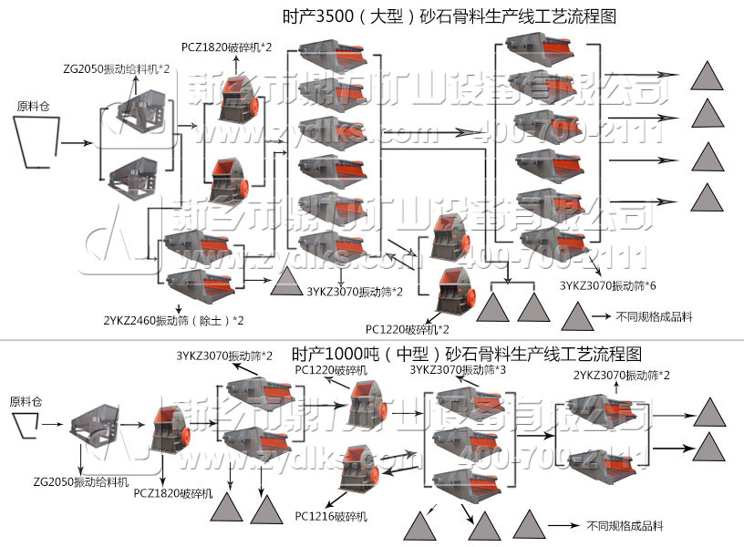 1000噸石料生產(chǎn)線則是有一臺振動給料機均勻給料,進入破碎設備進行物料破碎,破碎物料接著進入振動篩進行篩分,不滿足粒度物料直接進入下破碎設備進行再次破碎?梢愿鶕(jù)成品料顆粒粒度的需求增加破碎設備和篩網(wǎng)不同孔徑的振動篩進行砂石生產(chǎn)線砂石物料的生產(chǎn)?梢钥闯龃藯l生產(chǎn)線生產(chǎn)物料為顆粒比較細小砂石料。