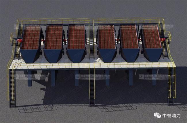 1.3 篩分環(huán)節(jié)采用36臺YKQ系列振動篩,質(zhì)量更輕、能耗更低,處理量更大、運行更平穩(wěn)。三臺振動篩并聯(lián)的設計,可以使用1臺電機帶動3臺振動篩,單臺功率更低。