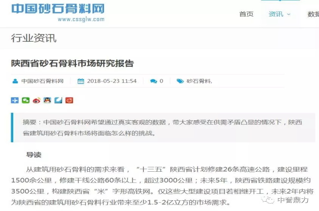 根據(jù)中砂石骨料網(wǎng)新的《陜西省砂石骨料市場(chǎng)研究報(bào)告》,“十三五”陜西省僅大型建設(shè)項(xiàng)目相繼開(kāi)工,未來(lái)2年內(nèi)將為陜西省的建筑用砂石骨料行業(yè)帶來(lái)至少1.5-2億立方的市場(chǎng)需求。與此2018年4月8日,陜西省土資源廳再次下發(fā)《陜西省土資源廳關(guān)于進(jìn)一步采取措施保障石料市場(chǎng)供應(yīng)的通知》,指出西安、渭南,指出兩市砂石供應(yīng)仍有較大缺口。