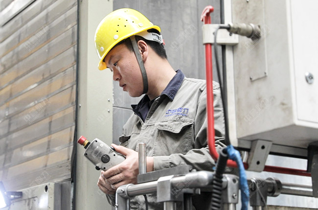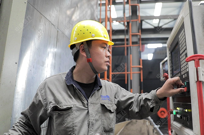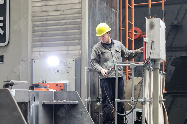 在中譽鼎力智能化一體生產車間,數(shù)控鏜銑床發(fā)揮適應性強、加工精度高、加工質量穩(wěn)定和生產效率高等優(yōu)點,為公司破碎設備的高品質制造、高性能運轉提供了有力保障。這款高精端加工設備得以操作運行,離不開生產部機加工班組鏜銑工韓俊的功勞。