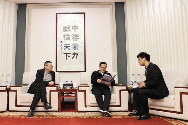 中譽鼎力智能裝備有限公司總經(jīng)理楊乾、衛(wèi)輝市遠(yuǎn)大新材料有限公司總經(jīng)理張志偉熱情接待。