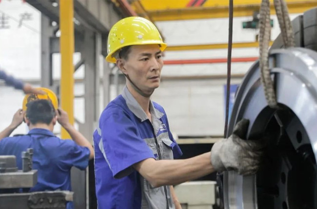 調質熱處理過的鋼鑄件切割后,在他手上經過粗車細削等多道工序,順利通過嚴格自檢和質檢后,才能流轉至裝配環(huán)節(jié),多維度保障了機加工組件的耐磨性,使公司產品運行穩(wěn)定。