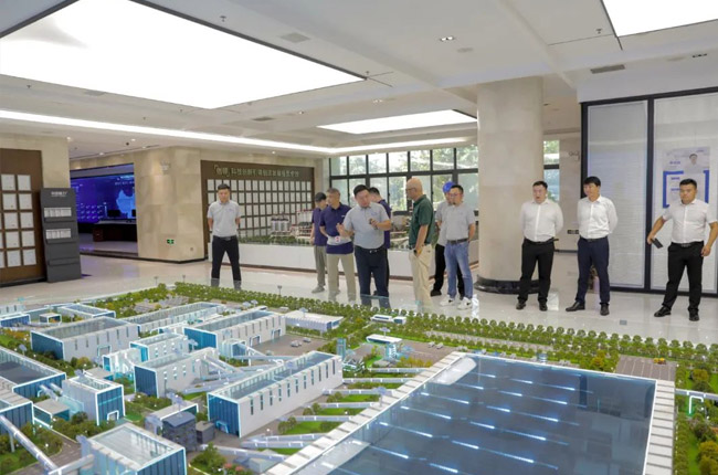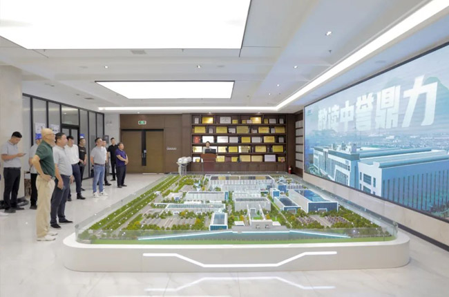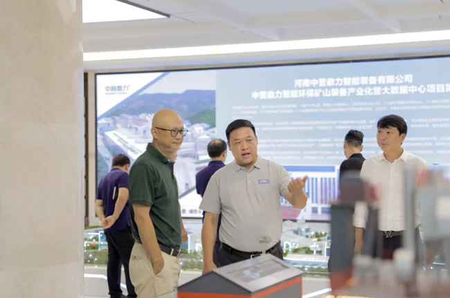 在中譽鼎力智能裝備廠區(qū),砂石骨料網(wǎng)考察團先后參觀了集團發(fā)展歷程墻、企業(yè)文化墻、綠色建材工業(yè)互聯(lián)網(wǎng)大數(shù)據(jù)中心和多位一體循環(huán)建材產(chǎn)業(yè)園項目沙盤等,對中譽鼎力主營業(yè)務及產(chǎn)品服務有了更進一步的了解。