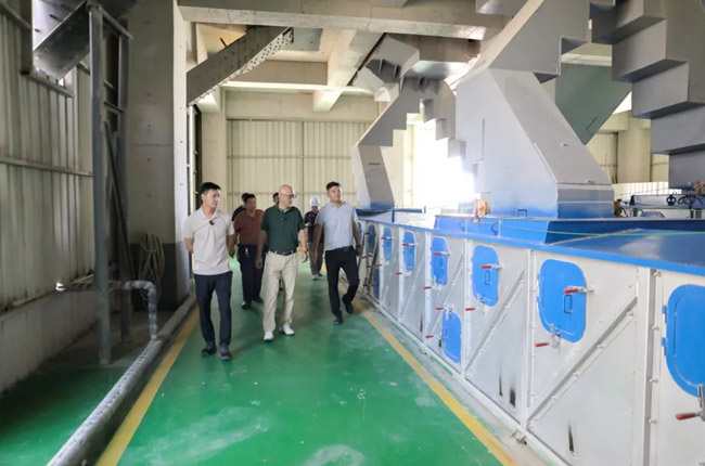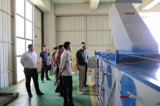 在項目輸送車間,考察團成員著重了解了中譽鼎力創(chuàng)新產(chǎn)品箱式皮帶輸送機及其優(yōu)勢,點贊該設備環(huán)保、省錢省力。