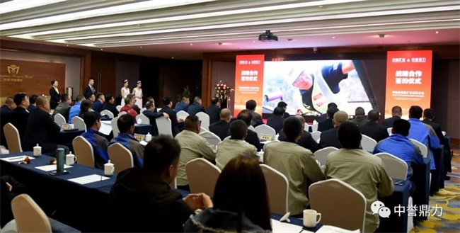河南中譽(yù)鼎力智能裝備有限公司董事長張治民、副總經(jīng)理張永臣、中譽(yù)鼎力河北服務(wù)總經(jīng)理胡震森、中譽(yù)鼎力服務(wù)總監(jiān)徐浩;茂鑫礦業(yè)有限公司股東——河北新集團(tuán)董事長邢建勇、河北中紅集團(tuán)董事長李力、北京中會人信投資有限公司董事長劉仁錄,茂鑫礦業(yè)有限公司總經(jīng)理畢玉江、副總經(jīng)理馮海廷等出席了簽約儀式。