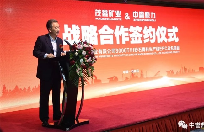 河南中譽(yù)鼎力智能裝備有限公司董事長張治民在致辭中表示,這個儀式,標(biāo)志著兩家企業(yè)的戰(zhàn)略合作正式啟動。中譽(yù)鼎力有信心,把茂鑫礦業(yè)時產(chǎn)3000噸生產(chǎn)線建成當(dāng)?shù)丨h(huán)保生產(chǎn)線的榜樣。簽約儀式完成以后,明天項(xiàng)目各部門就會進(jìn)入工地開始前期各項(xiàng)工作。中譽(yù)鼎力作為項(xiàng)目的EPC總承包商,會在短時間內(nèi),把環(huán)保、智能的砂石骨料生產(chǎn)線呈現(xiàn)在大家面前。
