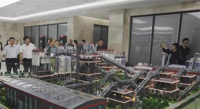 考察團一行參觀中譽鼎力五位一體循環(huán)建材產(chǎn)業(yè)園項目沙盤