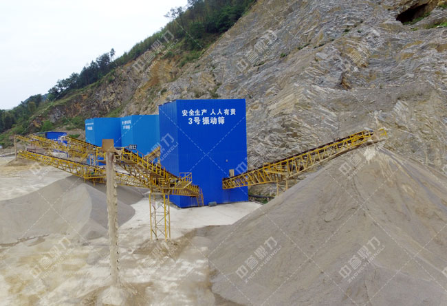 c、然后振動篩分設(shè)備進行篩選分級,將達標物料放入成品去。