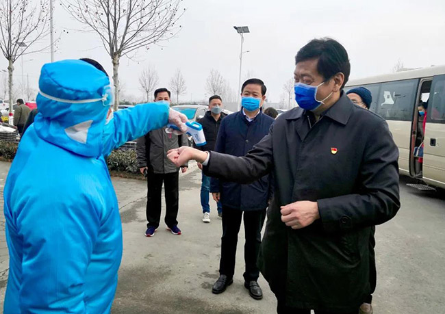 體溫檢測后進入中譽鼎力智能裝備公司廠區(qū)