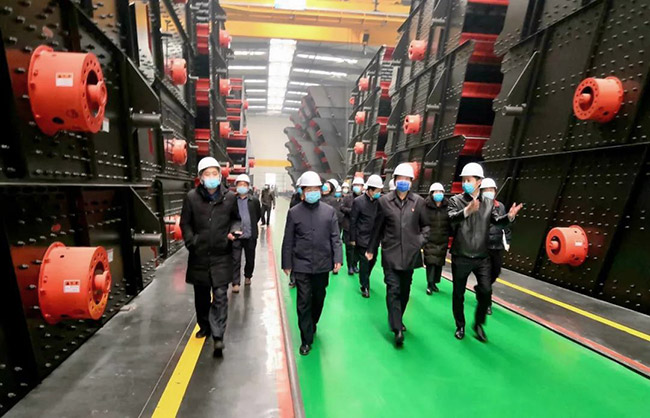 在中譽鼎力智能裝備公司廠區(qū),張治民董事長向各位導(dǎo)詳細匯報公司復(fù)工復(fù)產(chǎn)情況,并介紹中譽鼎力“五位一體”循環(huán)建材產(chǎn)業(yè)園及一體化智能生產(chǎn)車間。