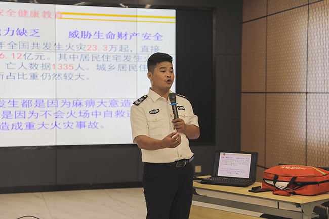 在之后的消防安知識培訓(xùn)講座上,張?zhí)m濤教官從實際案例出發(fā),圍繞消防安“四個能力建設(shè)”、應(yīng)急處置程序和逃生技巧等內(nèi)容進(jìn)行了詳細(xì)而具體的講解。