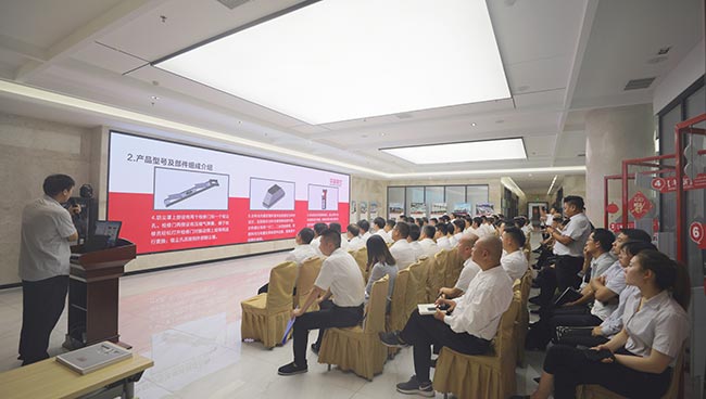 發(fā)布會(huì)上,河南中譽(yù)鼎力智能裝備有限公司技術(shù)部長(zhǎng)劉海淘先后為大家介紹了DLPCZ、DLPC系列錘式破碎機(jī)、DL2YKZ3070振動(dòng)篩密封鋼構(gòu)、給料+破碎整體鋼構(gòu)、移動(dòng)式破碎站、干法制砂樓、選粉機(jī)等公司新上市設(shè)備,對(duì)設(shè)備的特點(diǎn)、分類、組成及安裝維護(hù)等內(nèi)容進(jìn)行了詳細(xì)的講解與說(shuō)明,讓各地服務(wù)銷售代表對(duì)公司新上市設(shè)備及其優(yōu)勢(shì)有了更深層次的了解和認(rèn)識(shí),便于今后營(yíng)銷服務(wù)工作的開(kāi)展。