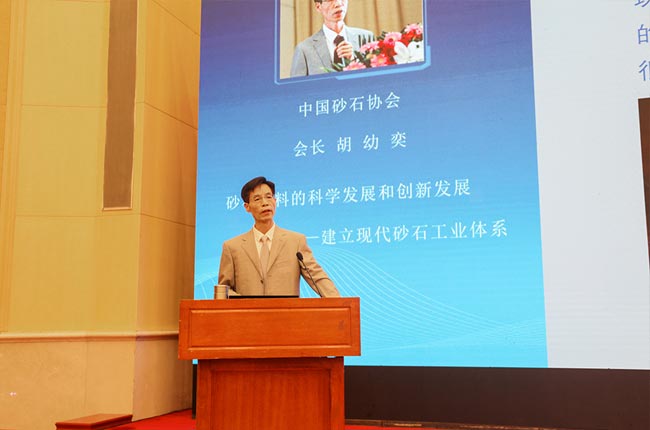 之后,中砂石協(xié)會會長胡幼奕作題為《砂石骨料的科學(xué)發(fā)展和創(chuàng)新發(fā)展——建立現(xiàn)代砂石工業(yè)體系》的主旨演講。