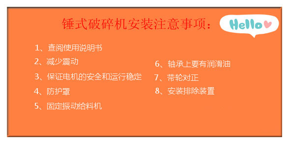 單段錘式破碎機(jī)主要是用于破碎中等硬度且脆性高的物料,(錘式破碎機(jī)可以破碎哪些物料呢?)它一般不配帶蓖條,防止堵塞,在正式投產(chǎn)使用之前,需要有一個(gè)很好的安裝方案,才可以減少在以后使用中出現(xiàn)的麻煩,該方案中,主要介紹以下8個(gè)方面。