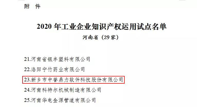 為深入實(shí)施家知識產(chǎn)權(quán)戰(zhàn)略,按照《制造業(yè)知識產(chǎn)權(quán)行動計劃(2018-2020年)》(工信部聯(lián)科【2018】239號)、《工業(yè)和信息化部辦公廳關(guān)于開展工業(yè)企業(yè)知識產(chǎn)權(quán)運(yùn)用試點(diǎn)工作的通知》(工廳科【2020】725號)要求,經(jīng)企業(yè)自愿申報、地方與行業(yè)、形式審核等程序,近期,工業(yè)和信息化部辦公廳公布了工業(yè)企業(yè)知識產(chǎn)權(quán)運(yùn)用試點(diǎn)企業(yè)名單。新鄉(xiāng)市中譽(yù)鼎力軟件科技股份有限公司榜上有名!