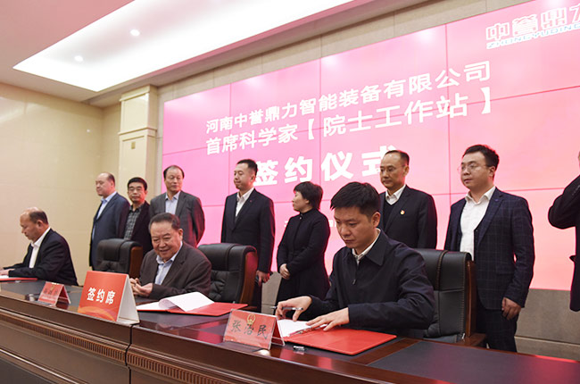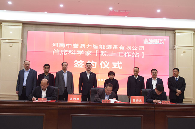 中工程院院士張鐵崗、河南中譽鼎力智能裝備有限公司董事長張治民、鄭洛新科技大市場總經(jīng)理路先鋒、鄭洛新科技大市場總經(jīng)理助理任潛隆、鄭洛新科技大市場綜合辦主任陳素英、河南中譽鼎力智能裝備有限公司總經(jīng)理楊乾乾及中譽鼎力高層管理人員參加簽約儀式。