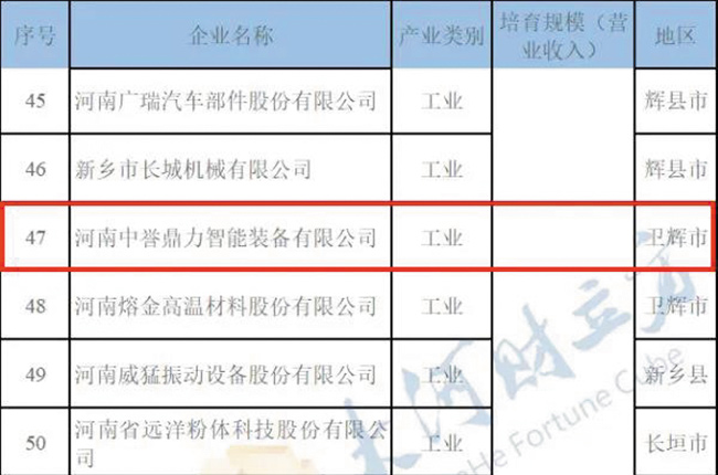 同時,《計劃》發(fā)布了新鄉(xiāng)市“3513”大企業(yè)(集團)培育名單,河南中譽鼎力智能裝備有限公司入圍。