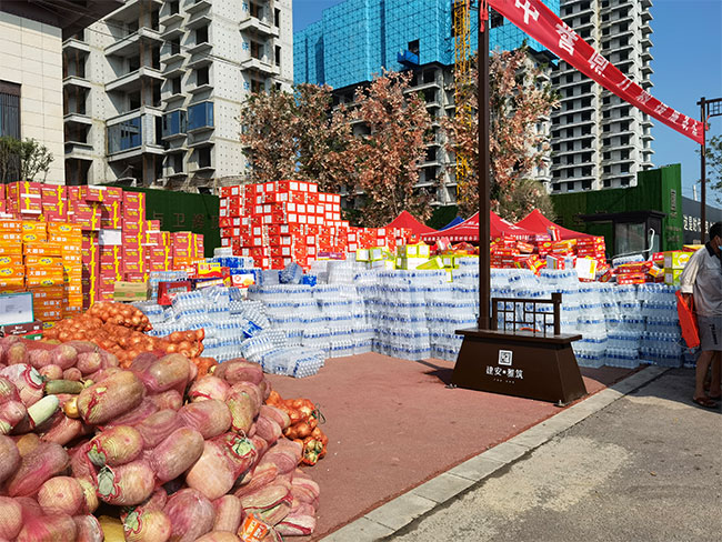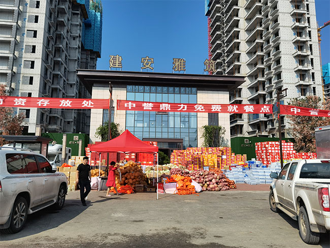 衛(wèi)輝暴雨救援|中譽(yù)鼎力在建安雅筑設(shè)立救助站,配送水、食品與蔬菜物