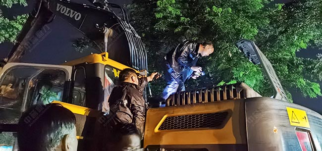 7月27日晚,排水槽施工現(xiàn)場,施工人員正在進行車輛檢查