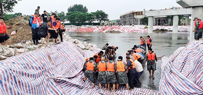 受暴雨影響,河南省新鄉(xiāng)市衛(wèi)輝市的水位持續(xù)上漲,內澇嚴重,7月27日,經研究決定,臨時開挖東孟姜女河左堤下泄城區(qū)澇水,開槽排澇工程由中譽鼎力集團施工,在聶書記的帶下,體人員奮戰(zhàn)一天一夜,終于將東孟河堤打通,成功泄洪。