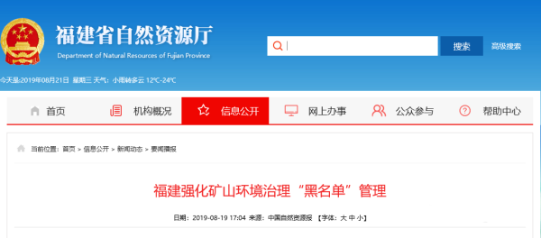 福建自然資源廳:加強礦山環(huán)境恢復治理“黑名單”管理