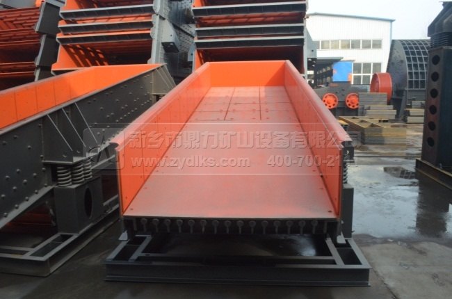新鄉(xiāng)鼎力在配置石料生產(chǎn)線(xiàn)時(shí)使用的是ZG系列振動(dòng)給料機(jī),它作為連續(xù)、均勻給料的輔助設(shè)備。激振力的大小可以通過(guò)調(diào)整偏心塊的相對(duì)角度來(lái)改變,我們的給料機(jī)在設(shè)計(jì)時(shí)改變了以往平面的設(shè)計(jì),整體機(jī)身有著11度的傾斜角度,利用這個(gè)巧勁給料更省力,下雨天也不容易堵塞。