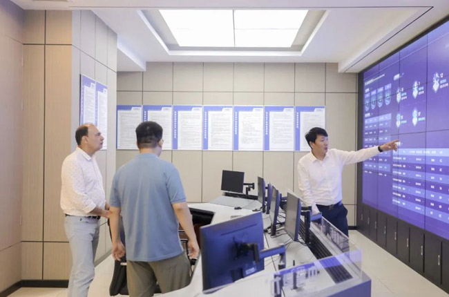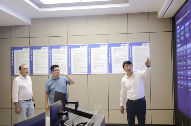 在中譽鼎力綠色建材大數(shù)據(jù)中心,大衛(wèi)多夫?qū)χ悄艿V山管控平臺表現(xiàn)出來濃厚的興趣。李觀本對客戶提出的問題進(jìn)行了專業(yè)的解答。