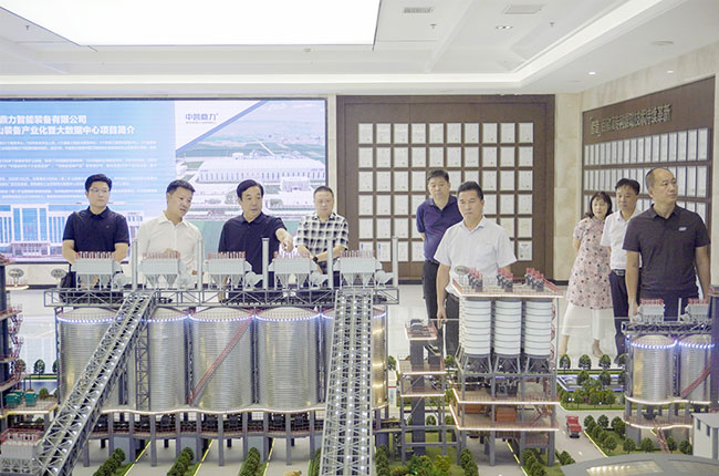 在河南中譽鼎力智能裝備有限公司,調研組一行先參觀了中譽鼎力多位一體循環(huán)建材產業(yè)園項目沙盤,并觀看了中譽鼎力企業(yè)宣傳片,對公司綠色建材項目承建運營及主要業(yè)務情況等有了進一步了解。