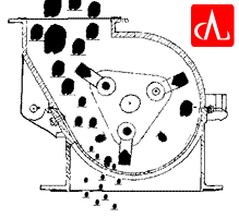 錘式破石機由箱體、轉子、錘頭、反擊襯板、篩板等組成。在工作時,轉子(盤)在電機的帶動下高速旋轉,物料從機器上不落入機腔內,落入高速旋轉的轉盤,在高速離心力的作用下,與機腔內的物料產生碰撞形成快速次破碎;錘頭在高速旋轉的轉子帶動下對物料進行打擊形成次破碎,同時物料獲得很大的動能撞向強內壁的反擊板,形成第三次碰撞破碎,這樣物料在機腔內受到打擊、研磨,直到物料粒度小于錘頭與調節(jié)襯板之間的間隙排除機腔。