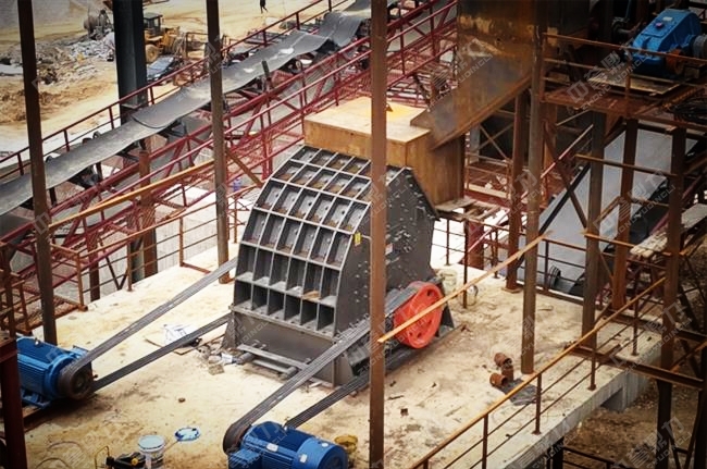 錘式破碎機(jī)是順著進(jìn)入破碎石頭落下的方向撞擊破碎石頭,錘頭是它的主要工作部件,且錘頭是單個(gè)對(duì)石頭破碎,獲得沖擊能有限。它的給料范圍可以達(dá)到1米以上。