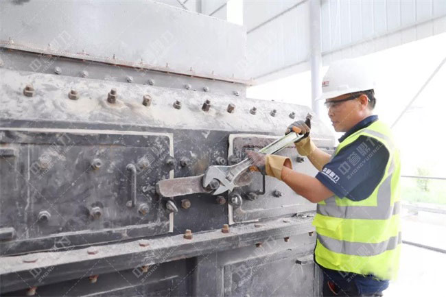 2、當(dāng)錘頭的任一面磨損大于60毫米時,需調(diào)換錘頭的上下面,將未磨損的一面調(diào)頭,換為工作面。尤其留意需此時將四個錘頭調(diào)頭,嚴(yán)禁轉(zhuǎn)子的不均衡而帶來的震動。