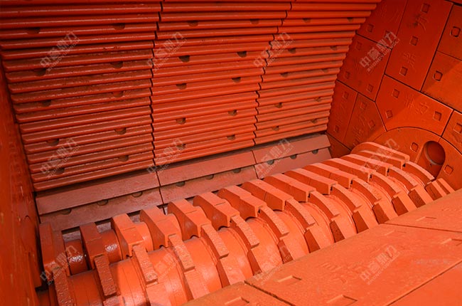 襯板安裝在破碎機(jī)內(nèi)壁,從下圖可以看到,側(cè)襯板與反擊襯板不一樣,反擊襯板采用的是波紋狀,性更高。
