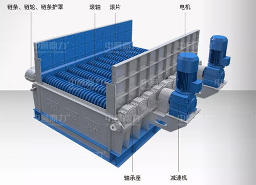 滾軸獨(dú)立傳動(dòng),互不影響,單獨(dú)檢修不影響生產(chǎn);且在機(jī)體上部和后側(cè)安裝有檢查孔,方便檢查維修