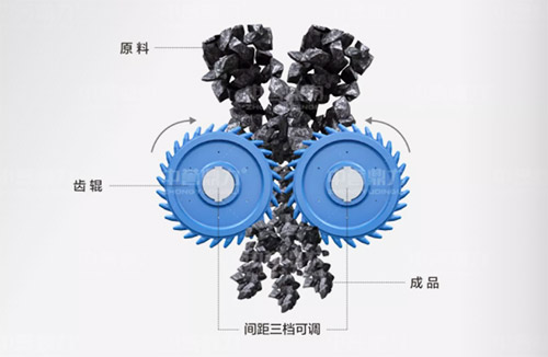 兩個齒輥的間隙設有三擋可調(diào),采用偏心剛性調(diào)整方法,使出料粒度保持穩(wěn)定;
