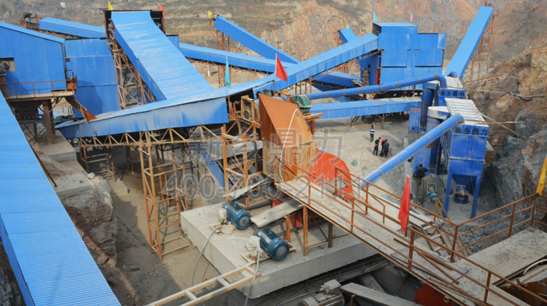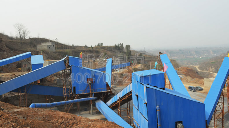 此條生產(chǎn)線時產(chǎn)700噸;基本配置:PCZ1615重型錘式破碎機、PC1512錘式破碎機、ZG2038給料機、3YKZ3070×2振動篩、2YKZ3070×2振動篩。
