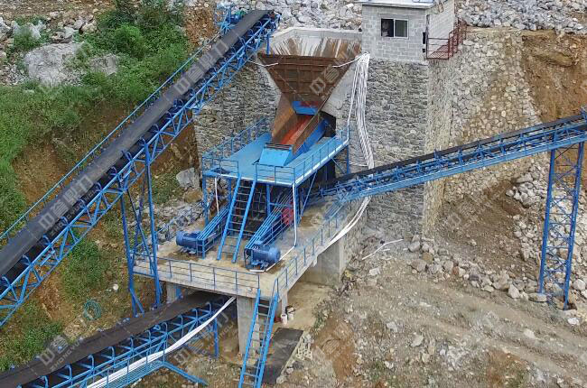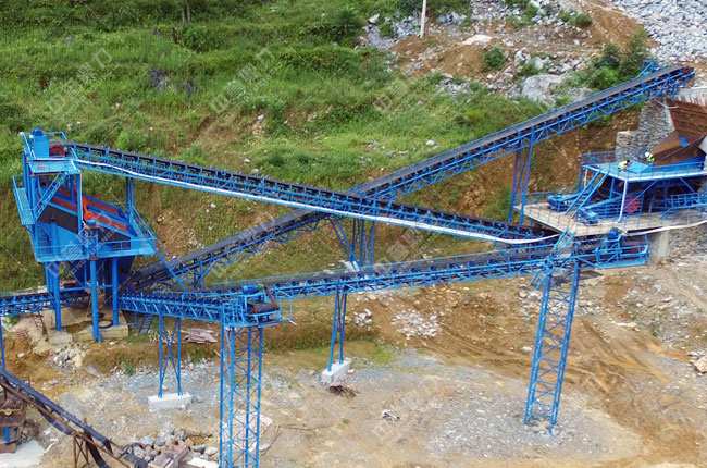 兩臺3YKS2460振動篩并列設(shè)計,篩分出三種成品料,篩分出來的大塊物料被輸送帶返回繼續(xù)破碎;