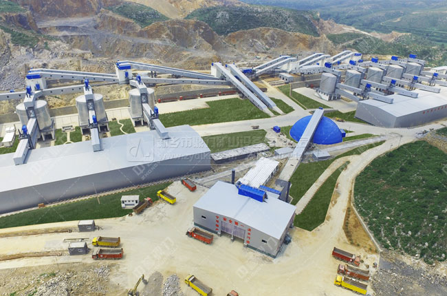 • 設備配置:振動給料機ZGC2560、重型錘式破碎機PCZ2125、整形破碎機PC1622*2臺、振動篩3YKQ2470*12臺、2YKQ2470*24臺、DMCA礦山除塵器