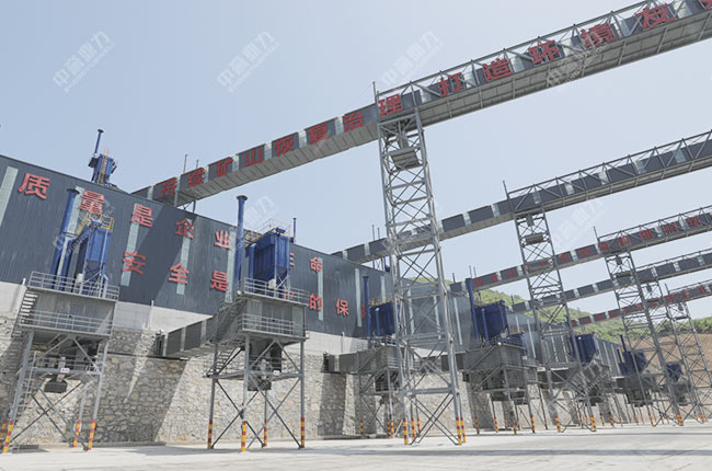 b.不同規(guī)格成品料通過密閉輸送帶進入相應規(guī)格的封閉成品料鋼板儲料倉,避免石料露天堆放造成粉塵污染。
