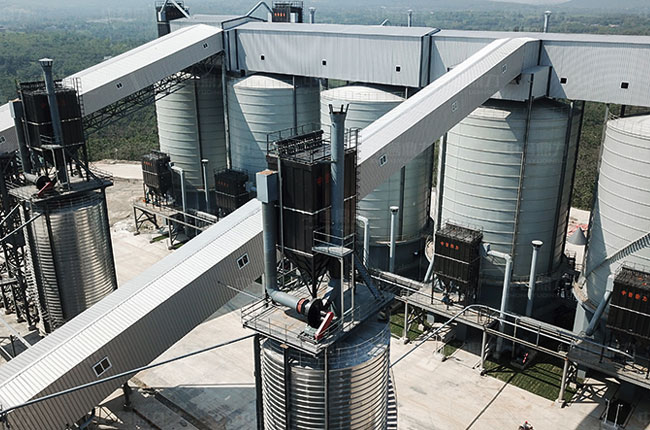 特點二:成品料分別儲存于5座圓形儲料倉內(nèi),各倉底均設有自動裝車系統(tǒng)和稱重系統(tǒng);