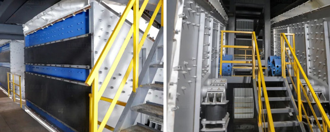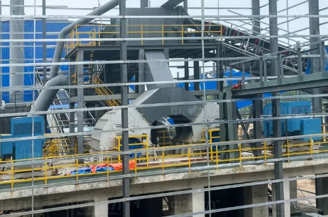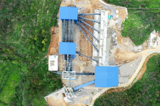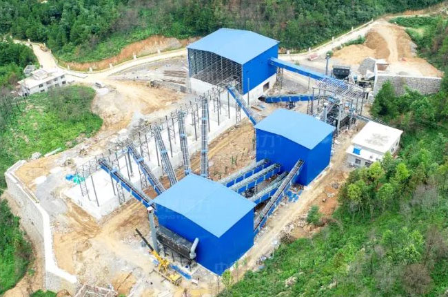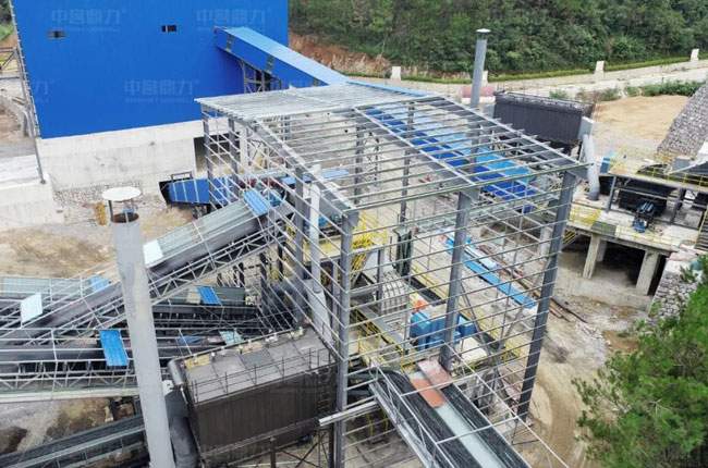 頭破采用DLPCZ1820重型錘式破碎機(jī),破碎出來的物料經(jīng)過中轉(zhuǎn)料倉,進(jìn)入由2臺DLPC1220整形錘式破碎機(jī)組成的二級破碎環(huán)節(jié),之后再進(jìn)行2道篩分,不滿足成品料粒度要求的被返回到二級破碎環(huán)節(jié),輸送帶采用廊道密封,解決物料輸送過程中粉塵擴(kuò)散問題,破碎、篩分車間均采用鋼結(jié)構(gòu)獨立密封,解決破碎篩分環(huán)節(jié)的粉塵擴(kuò)散問題。