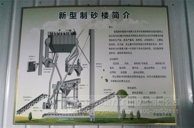 在時(shí)產(chǎn)300噸塔樓制砂生產(chǎn)線現(xiàn)場我們看到,中譽(yù)鼎力制砂樓建設(shè)采取集中建設(shè)的方式,在項(xiàng)目指示牌上可以一目了然的了解成套設(shè)備組成和生產(chǎn)過程,生產(chǎn)過程方便快捷,所有生產(chǎn)過程均在制砂樓上完成,成品砂可以直接用于銷售。