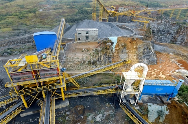 從時產(chǎn)500噸石灰石制砂生產(chǎn)線圖集上我們可以看到,在生產(chǎn)線上各除塵點配置了DMCA型礦山除塵器和礦山振動篩,經(jīng)過至少兩次篩分的過程,可以達到終篩分的,再進入到下一道生產(chǎn)程序中,DMCA型礦山除塵器,可以將石料生產(chǎn)中粉塵吸收率提高到90%以上。