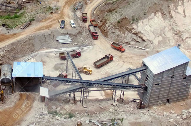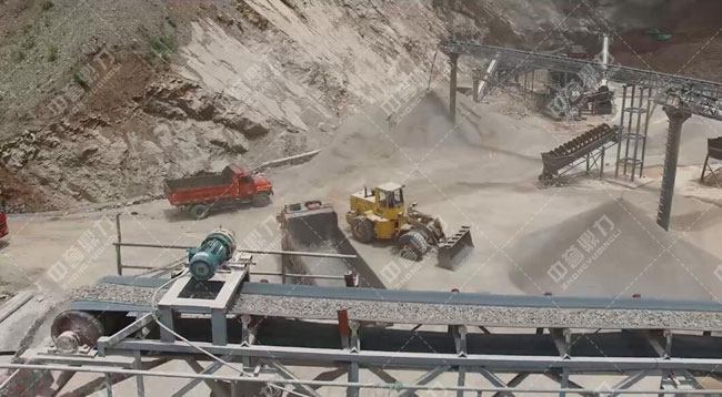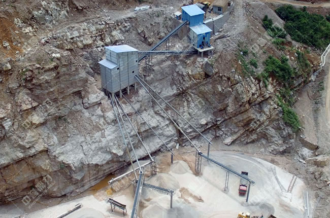 利用地形落差,破碎篩分后的成品料經(jīng)過(guò)管道直接落到成品料堆,節(jié)省輸送帶方面的投資;